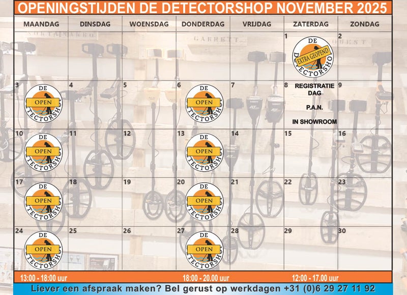 Zoals gezegd is de showroom in telefonisch bereikbaar op +31 (0) 6 29271192 voor ondersteuning op dezelfde tijden als hierboven beschreven. Als wij de telefoon niet kunnen opnemen, dan is er altijd een mogelijkheid om een bericht in te spreken. Desgewenst bellen wij u dan terug. U kunt uiteraard altijd gebruik maken van ons mailadres info@dedetectorshop.nl om uw vraag op deze wijze te stellen. Wij zullen u dan uiterlijk op onze volgende werkdag van een antwoord voorzien. We zien u graag in onze showroom!