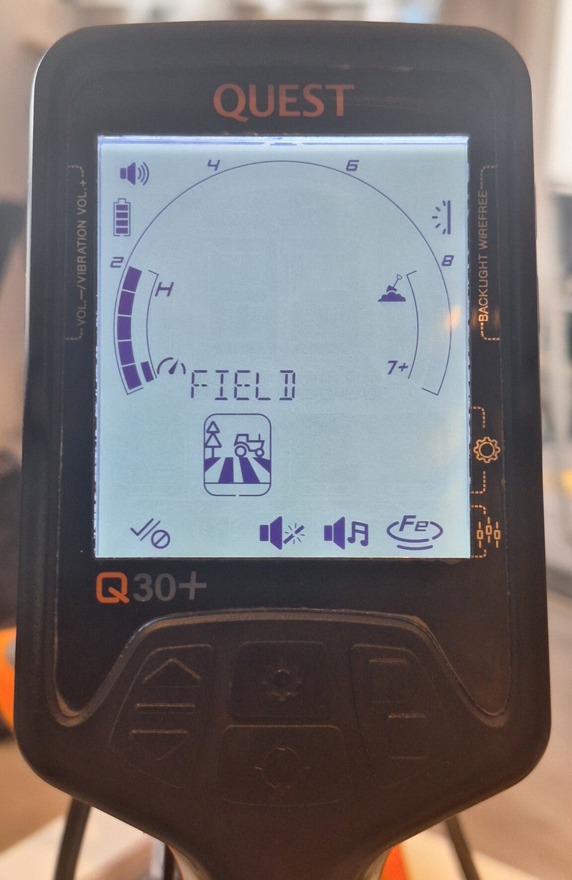 Natuurlijk zijn alle belangrijke functies te vinden op de Q30+ zoals de pinpoint functie, ijzer discriminatie en ijzer volume, voorwerp ID van 01 t/m 99, een displayverlichting, volumeregeling en hij heeft zelfs een vibratiefunctie waarmee detectie wordt gesignaleerd.