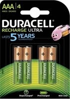 4 X AAA oplaadbare Ultra batterijen van Duracell.