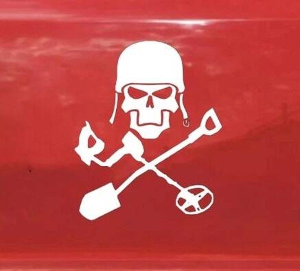 Sticker Metaaldetectie nr. 2 | Skull detector voor op de auto. Maar zeker ook op uw caravan of een raam. U vind er vast een mooi plekje voor.