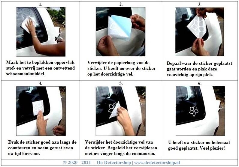 Lees voor het opplakken van de sticker de opplakinstructie. Om er zeker van te zijn dat u kunt genieten van de sticker en deze niet beschadigd, volgt u a.u.b. de hiernaast beschreven stappen.