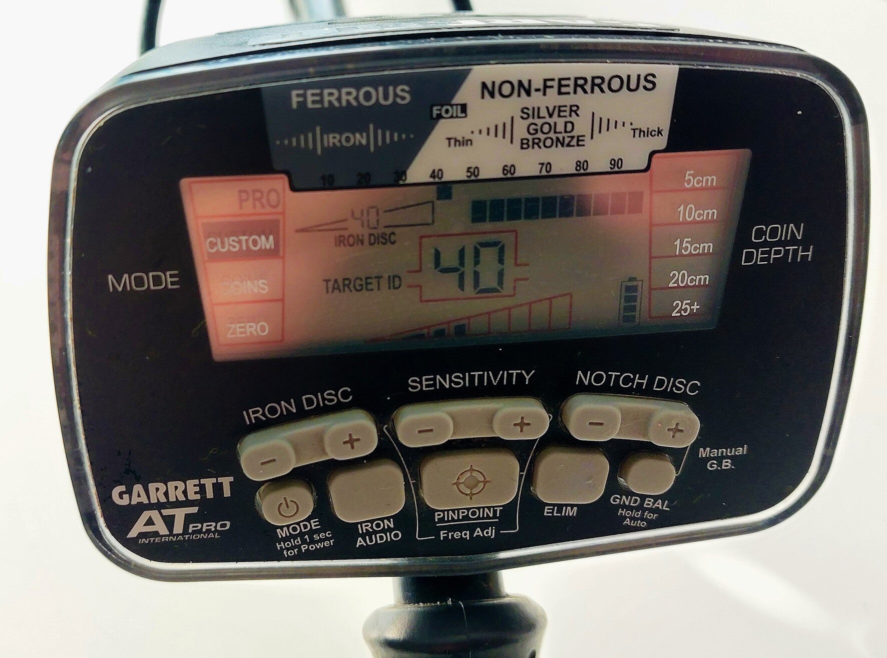 Deze prima onderhouden AT pro (gekocht 25 maart 2021) heeft maar weinig draaiuren op zijn teller. De klant heeft deze naast zijn andere metaaldetectors het minste gebruikt en vond de AT Pro wat te gevoelig reageerde.