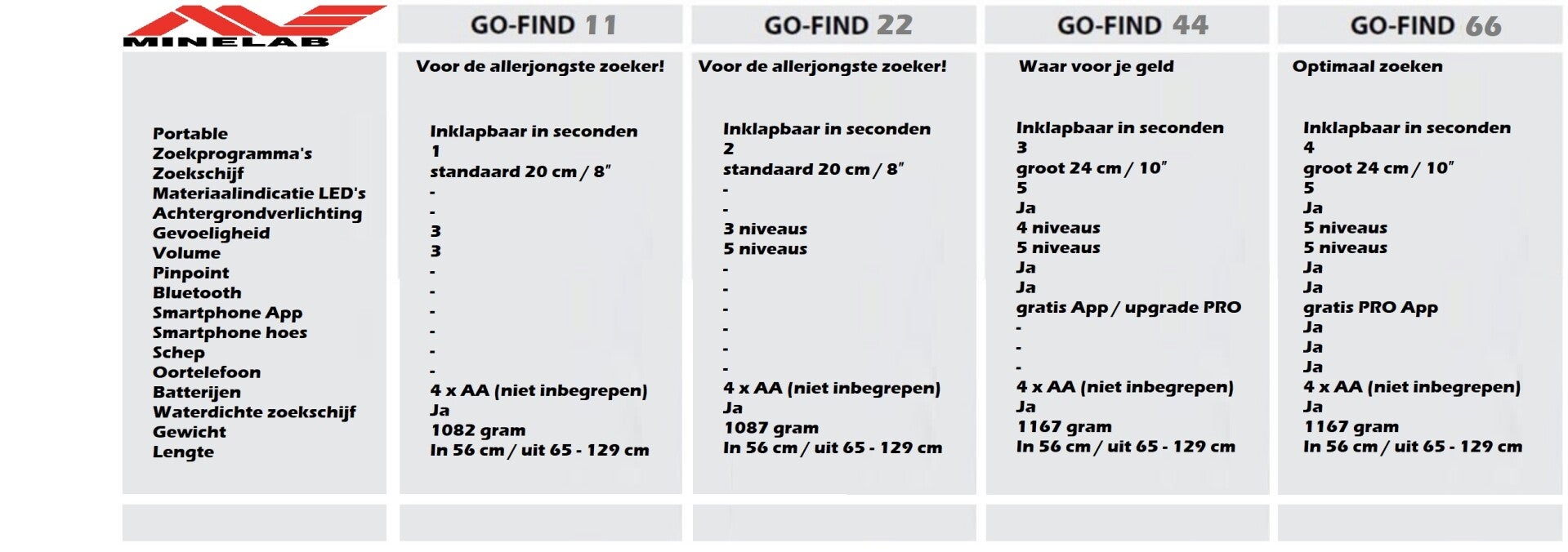 De zoek kwaliteiten zijn bijzonder goed! Van het zogenaamde ijzeren masker waar veel detectors in deze prijsklasse last hebben, heeft de GO-FIND serie dat niet of nauwelijks. Kortom een aanrader deze unieke nieuwe metaaldetector van Minelab!